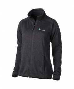 New - Ladies Villa sweater fleece jacket with defined waistline. 100% polyester, 9.73 oz/yd2/330gsm. Heat sealed bicep pocket, MP3 pocket, zipper pockets and storm flap on placket. Companion style. Easy Care. Audio port.