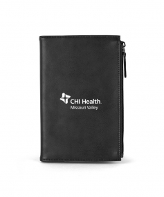 Stylish executive notebook with PU/split leather outer and suede inner cover. Features large zipper pocket (fits up to iPhone 7S Plus). Includes 80-sheet replaceable notebook. 5 3/4" H x 8 1/2" H