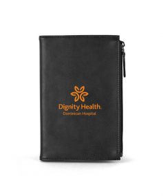 Stylish executive notebook with PU/split leather outer and suede inner cover. Features large zipper pocket (fits up to iPhone 7S Plus). Includes 80-sheet replaceable notebook. 5 3/4" H x 8 1/2" H