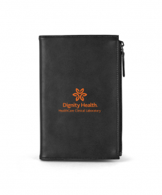Stylish executive notebook with PU/split leather outer and suede inner cover. Features large zipper pocket (fits up to iPhone 7S Plus). Includes 80-sheet replaceable notebook. 5 3/4" H x 8 1/2" H