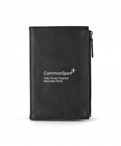 Stylish executive notebook with PU/split leather outer and suede inner cover. Features large zipper pocket (fits up to iPhone 7S Plus). Includes 80-sheet replaceable notebook. 5 3/4" H x 8 1/2" H