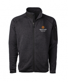 New - Men's Villa sweater fleece jacket. 100% polyester, 9.73 oz/yd2/330gsm. Heat sealed bicep pocket, MP3 pocket, zipper pockets and storm flap on placket. Companion style. Easy Care. Audio port.