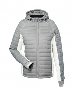 100% nylon. Ultra light synthetic down, polyester fiber. Wind-resistant.