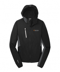 Fabric is made of 100% poly interlock bonded to poly interlock with a laminated film insert for wind and water resistance. Features 3000MM fabric waterproof rating and a 3000G/M2 fabric breathability rating.