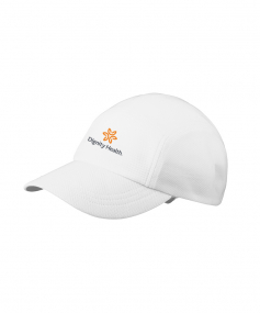 Sweat wicking, lightweight, breathable with 100% poly closed-hole mesh. Terry sweatband, 5 panel, unstructured, with low profile that stays secure as you run. Black under bill to prevent glare. Reflective O heat transfer on side panel and webbing with buckle closure.
