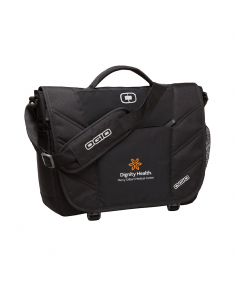 Features flapover construction with double lock closure, interior padded laptop compartment, padded tablet/e-reader sleeve & easy access zippered pockets for business essentials. Also, dual side beverage/accessory holsters, adjustable/padded shoulder strap & top handle. 600D poly/420D dobby poly. Laptop sleeve fits most 17" laptops. Complies with Prop 65. 17.5" W x 13.25" H x 4.5" D