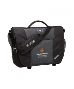 Features flapover construction with double lock closure, interior padded laptop compartment, padded tablet/e-reader sleeve & easy access zippered pockets for business essentials. Also, dual side beverage/accessory holsters, adjustable/padded shoulder strap & top handle. 600D poly/420D dobby poly. Laptop sleeve fits most 17" laptops. Complies with Prop 65. 17.5" W x 13.25" H x 4.5" D