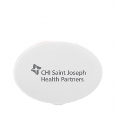 Oval-shaped, lightweight, compact design fits in pockets or purses to carry a variety of pills, large or small. Complies with Prop 65. 1 5/16" W x 1 7/8" H x 7/8" D