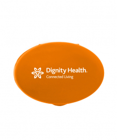 Oval-shaped, lightweight, compact design fits in pockets or purses to carry a variety of pills, large or small. Complies with Prop 65. 1 5/16" W x 1 7/8" H x 7/8" D