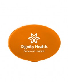 Oval-shaped, lightweight, compact design fits in pockets or purses to carry a variety of pills, large or small. Complies with Prop 65. 1 5/16" W x 1 7/8" H x 7/8" D