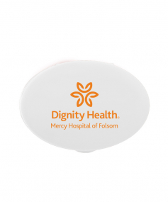 Oval-shaped, lightweight, compact design fits in pockets or purses to carry a variety of pills, large or small. Complies with Prop 65. 1 5/16" W x 1 7/8" H x 7/8" D