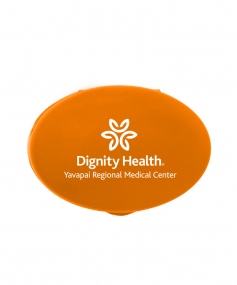 Oval-shaped, lightweight, compact design fits in pockets or purses to carry a variety of pills, large or small. Complies with Prop 65. 1 5/16" W x 1 7/8" H x 7/8" D