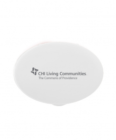 Oval-shaped, lightweight, compact design fits in pockets or purses to carry a variety of pills, large or small. Complies with Prop 65. 1 5/16" W x 1 7/8" H x 7/8" D