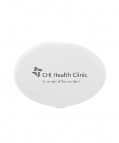 Oval-shaped, lightweight, compact design fits in pockets or purses to carry a variety of pills, large or small. Complies with Prop 65. 1 5/16" W x 1 7/8" H x 7/8" D