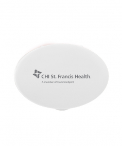 Oval-shaped, lightweight, compact design fits in pockets or purses to carry a variety of pills, large or small. Complies with Prop 65. 1 5/16" W x 1 7/8" H x 7/8" D