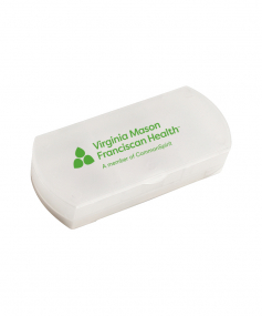8 Bandages. 3 Separate Compartments. Bottom Slides Open To Access Bandages. Bandages Are Latex Free. Meets FDA Requirements. Complies with Prop 65. 4 1/2" W x 2" H