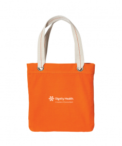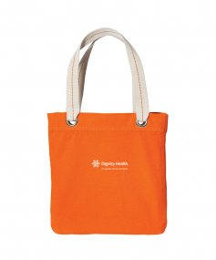 The Allie Tote is perfect for shopping, commuting or sightseeing. Contrast lining, striped handles and large metal grommets add a touch of whimsy to this casual tote. 11 Oz., cotton canvas. Interior zippered pocket. 13.25" W x 15.75" H x 3.5" D.