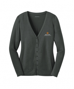 A piece her wardrobe should not be without: a soft versatile cardigan to layer with a favorite tee or tank. Ours has a wide hem and cuffs for a streamlined look. 4.4 Oz., 62/33/5 poly/rayon/spandex. It's tag-free label with open Y-neck and 9-button cardigan placket with dyed-to- match buttons.