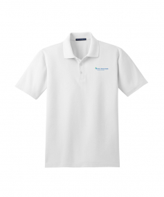 5.6-ounce, 60/40 cotton/poly. Includes double-needle stitching throughout. Flat knit collar and 3-button placket with dyed-to-match buttons. Features open hem sleeves and side vents.