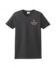 6.1 Oz. 100% Soft Spun Cotton. 98/2 Cotton/Poly (Ash). 90/10 Cotton/Poly (Athletic Heather). Shorter Cut Through The Body And Sleeves For A More Feminine Fit.