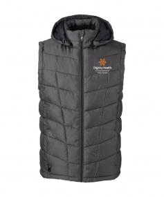 100% polyester nail head weave fabric ; Detachable hood with bungee cord and stopper ; Active fit; Invisible zipper inside chest for embroidery access ; Zippered handwarmer pockets