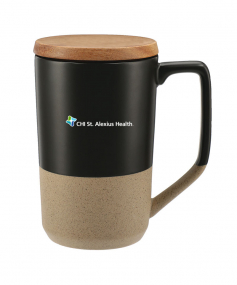 Cozy ceramic mug with a vintage finish on the body. Features an innovative groove design on the top for holding teabags. And perfect to drink tea with this mug. Wood, push-on lid, spill-resistant. 16oz.