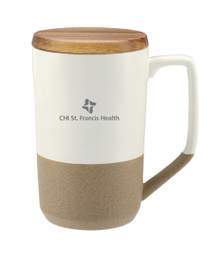 Cozy ceramic mug with a vintage finish on the body. Features an innovative groove design on the top for holding teabags. And perfect to drink tea with this mug. Wood, push-on lid, spill-resistant. 16oz.