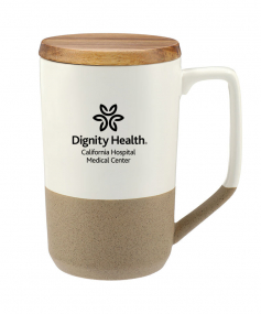 Cozy ceramic mug with a vintage finish on the body. Features an innovative groove design on the top for holding teabags. And perfect to drink tea with this mug. Wood, push-on lid, spill-resistant. 16oz.