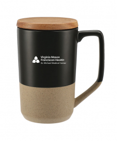 Cozy ceramic mug with a vintage finish on the body. Features an innovative groove design on the top for holding teabags. And perfect to drink tea with this mug. Wood, push-on lid, spill-resistant. 16oz.