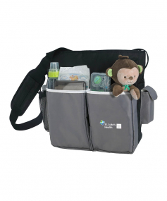 This modern diaper bag is a perfect fit for men and women! The neutral color is ideal for any baby gender and the back pocket is great to insert the changing pad for easy diaper change. It includes a mini bag exclusive design. Complies with Prop 65. 12 3/4" W x 13 1/2" H x 5" D