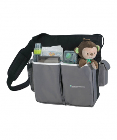 This modern diaper bag is a perfect fit for men and women! The neutral color is ideal for any baby gender and the back pocket is great to insert the changing pad for easy diaper change. It includes a mini bag exclusive design. Complies with Prop 65. 12 3/4" W x 13 1/2" H x 5" D