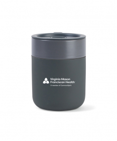 Crafted with durable ceramic and wrapped in protective matte silicone, this reusable mug is a high-quality replacement for disposable plastic or metal mugs. It's also BPA-free, dishwasher safe and microwave safe. Complies with CPSIA, Prop 65. 3" W x 4.4" H x 3" L