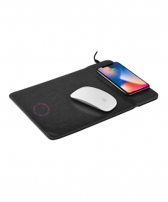 Wireless charging and standing of your smart phone can be accomplished with this thick leatherette mouse pad. Complies with Prop 65. 8.3125" W x 11.625" H x 0.3125" D