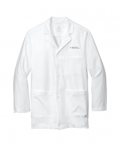 This lab coat is made with 65/35 poly/cotton poplin and features a locker loop, left chest pocket with pen slot, top-loading front pockets, an interior tablet pocket, a back yoke with pleats, a 3-button placket opening, center back vent, and the WonderWink® heat transfer logo at left pocket. Medium size is 31.5" back length.