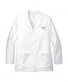 This lab coat is made with 65/35 poly/cotton poplin and features a locker loop, left chest pocket with pen slot, top-loading front pockets, an interior tablet pocket, a back yoke, a 3-button placket opening, center back vent, and the WonderWink® heat transfer logo at left pocket. Medium size is 29.5" back length.