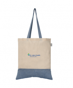 Step into a brighter future with our recycled cotton tote. This nature-inspired masterpiece redefines fashion. The upper part of the bag is made from a blend of 70% recycled cotton and 30% recycled polyester, giving it an elegant style. The lower section and handles, made from 5 oz. recycled cotton in mixed colors, add a chic color-block effect. The bag's spacious interior is a testament to both design and functionality, making it ideal for shopping, commuting and more.